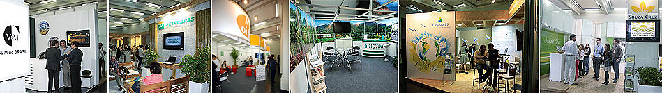É permitida comercialização de produtos e exposição de logomarcas (no estande) da cadeia produtiva, apresentação de projetos culturais, ambientais e sociais patrocinados pela empresa, assim como distribuição de folders e outros materiais de divulgação.