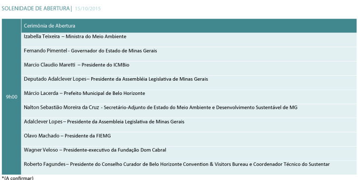 | 8º Diálogo de Abertura: Visão e Sustentabilidade | 15/10/2015 | 10h00 às 11h00 |