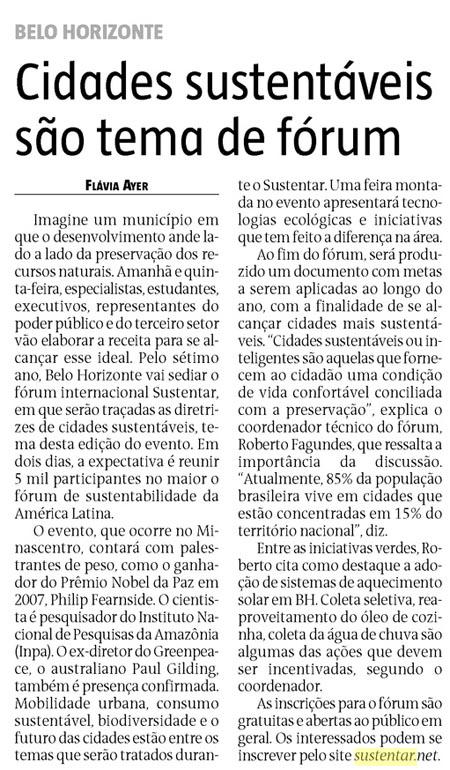 Notícia publicada no Jornal Estado de Minas, no dia 06 de maio.